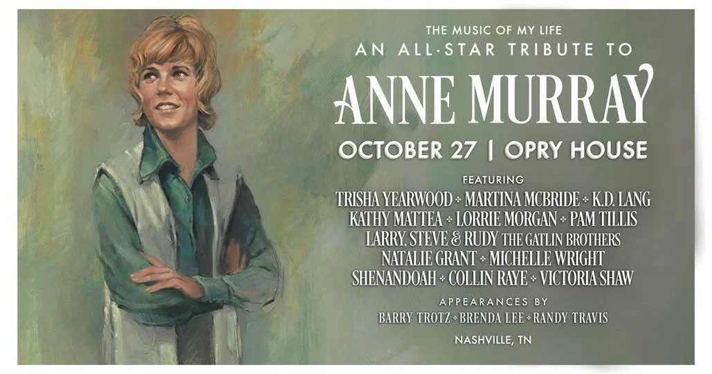 I'm beyond excited to announce that I will be honoring one of my biggest influences Anne Murray at The Opry House in Nashville on October 27th along with this amazing lineup. k.d. lang Martina McBride Trisha Yearwood Lorrie Morgan Pam Tillis Official Music Page Kathy Mattea Natalie Grant Larry, Steve & Rudy - The Gatlin Brothers Victoria Shaw Collin Raye Shenandoah with appearances by Randy Travis Brenda Lee @Barry Trotz
